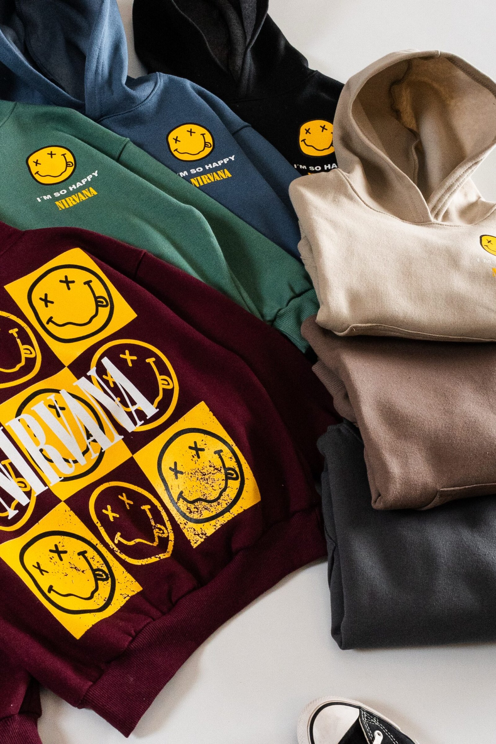 Diseño frontal con el icónico smile y versión con estampa full en espalda (según modelo).